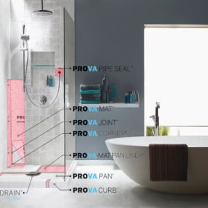 Couvrant tous vos besoins d’étanchéité, PROVA-MATMD et ses accessoires, y compris les membranes d’étanchéité pour joints, angles et tuyaux, sont inégalés pour ce qui est de la facilité d’installation et de la résistance à la vapeur. Les résultats des tests rigoureux effectués par des tiers couronnent PROVA-MAT comme la solution standard de l’industrie pour résister à la circulation de la vapeur, ce qui en fait la solution ultime pour l’imperméabilisation des douches standard et des douches à vapeur. Avec de tels résultats, il n’est pas nécessaire d’opter pour des membranes moins ou plus performantes : PROVA-MAT s’occupe de tout!