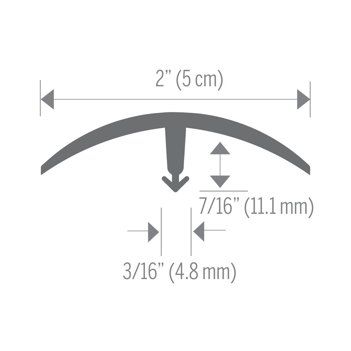 Wide Leg T Cap for use where adjacent floors meet and color coordination is important. For residential or light traffic area. Made for height differentials up to 3/8”. Fits wide channels such as CM1655, CM1755, CM1759, CM1140, CM14270, CM14271.