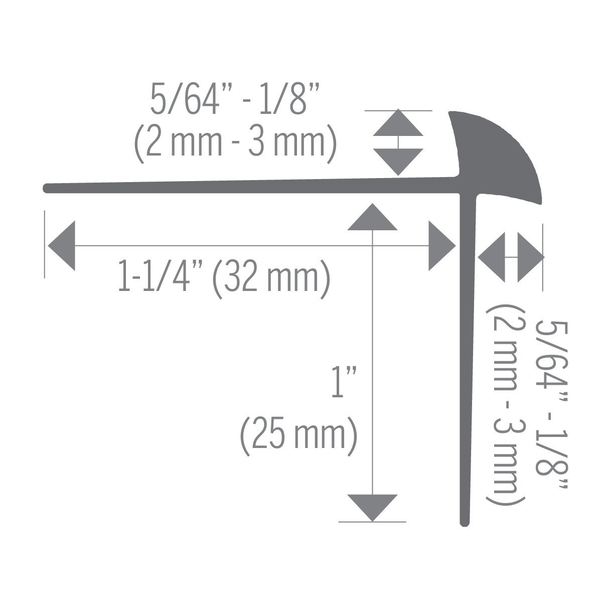 LVT/LVP Outside Corner Sq. Stair Nosing – Satin Clear Anodized (SCA) – 5/64 in. – 1/8 in. (2 mm – 3 mm) x 12 ft. (3.7 m)